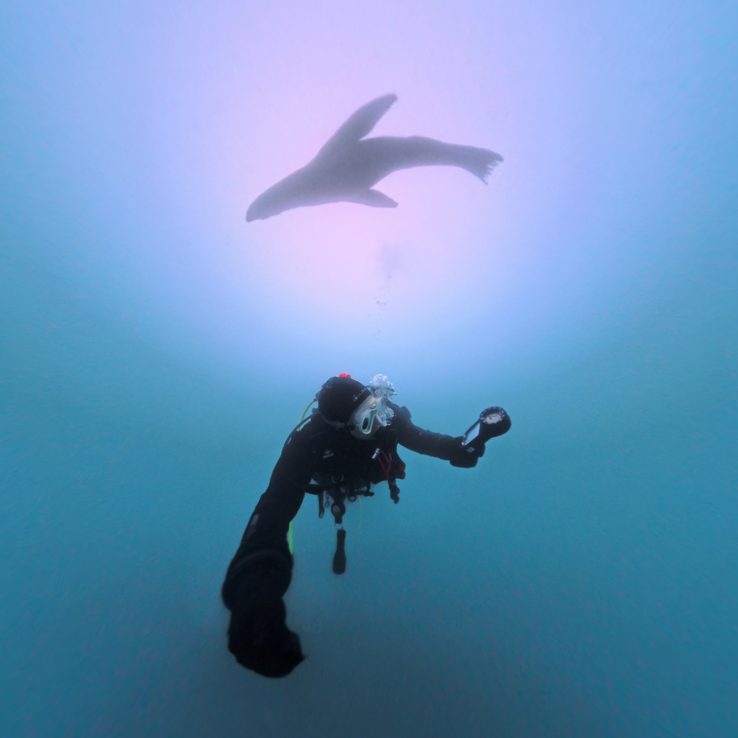 I went diving with the North Canterbury Dive Club and I a seal photo bombed me. What a fantastic out on the water.