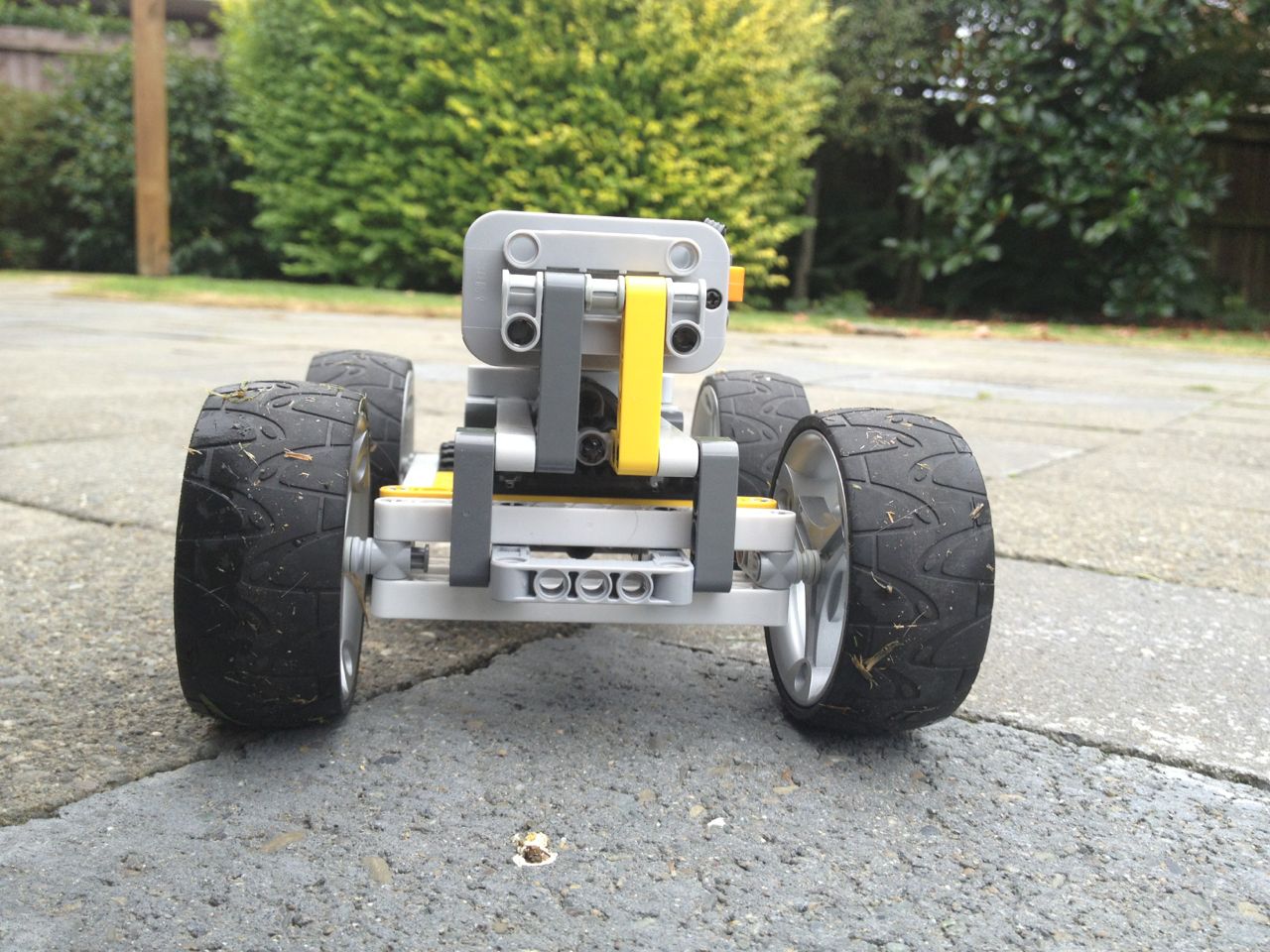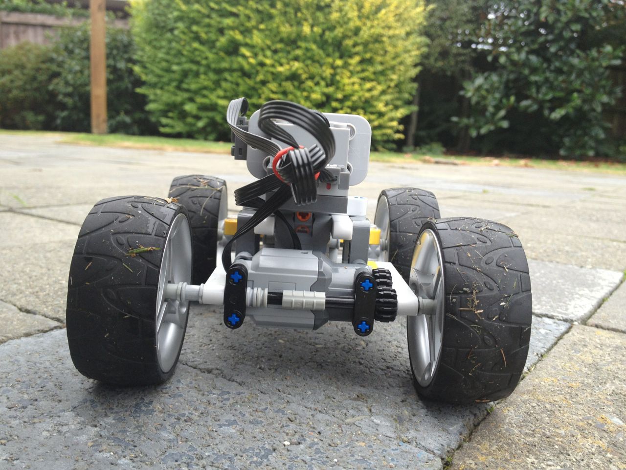 This video shows a very fast LEGO car. It is light, small and agile. The batteries can be easily exchanged. The servo steering make it easy to drive around in small spaces. But it can also speed up big time on long straights. The building instructions are available here and also as a LDX file. The MOC has been posted to Rebrickable.
