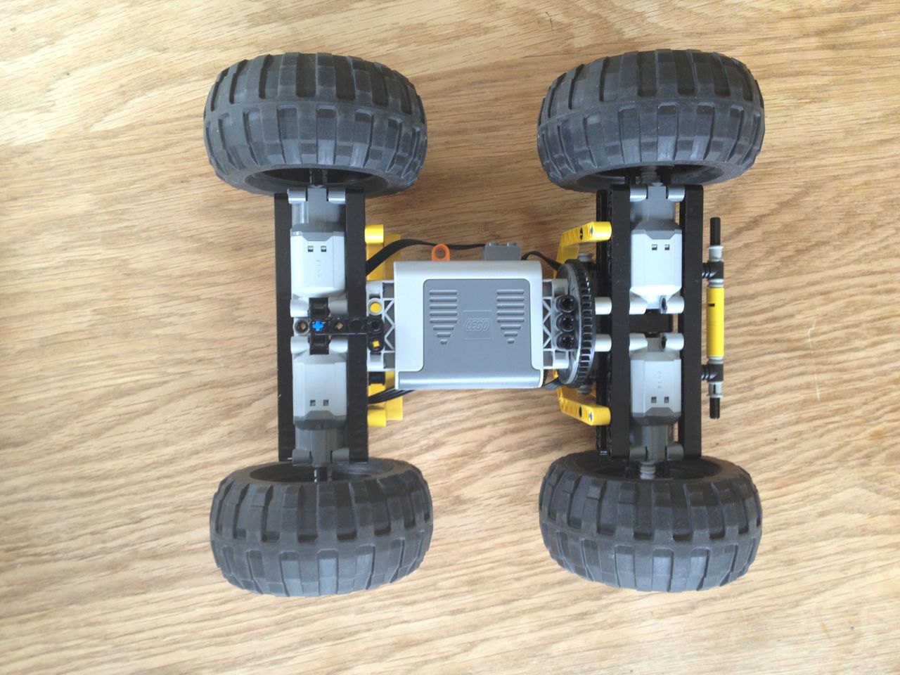 LDD did not have the large motors in its library at that time. Hence their absence. I tried to add “fake” motors to it that indicate their position. Look at the photographs, it is reasonable easy to make out their location and orientation.