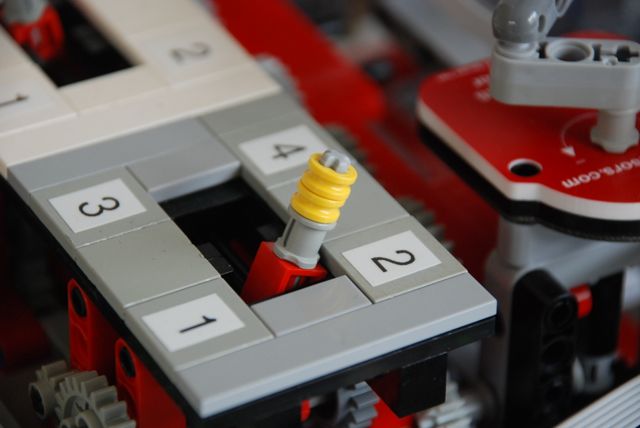 spirograph-automaton-bartneck-smallPlease notice that the instructions do not include the three Mindsensors’ GlideWheel-AS sensors. They are not part of the LDD library. And neither is the part 14720 (Technic, Liftarm 3 X 5 Perpendicular H-Shape Thick) of which you will need two. You will also need four rubber bands, may it be from LEGO or otherwise. You can also consider using the Technic Changeover Plate (6631) for a better gear shifting experience. The complete parts list is available at ReRrickable.