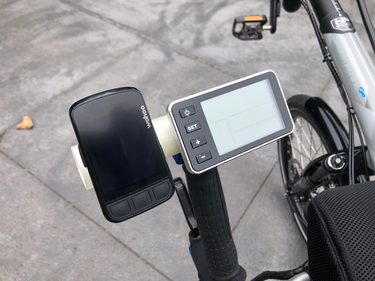 This is a bicycle mount for a computer and a display unit of an ebike. It has 22mm and 32mm tubes to which computers can be mounted. The mount goes into the bar end of a steering wheel. This is paraticulary useful for recumbent bikes. The mount is designed for M5 nuts and bolts, but depending on the accuracy of your 3D printer you might need to use M4 bolts. You can download the 3D files over at GrabCAD.
