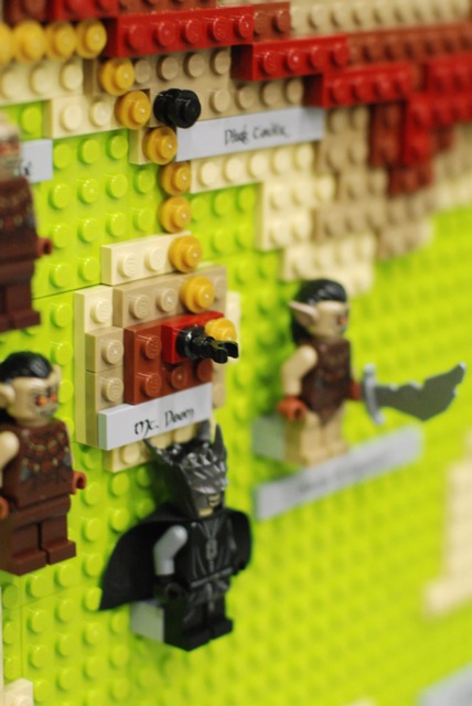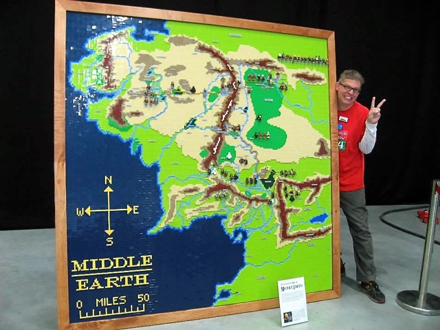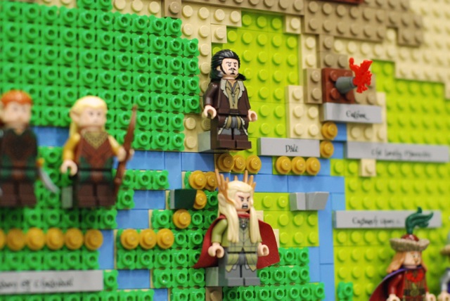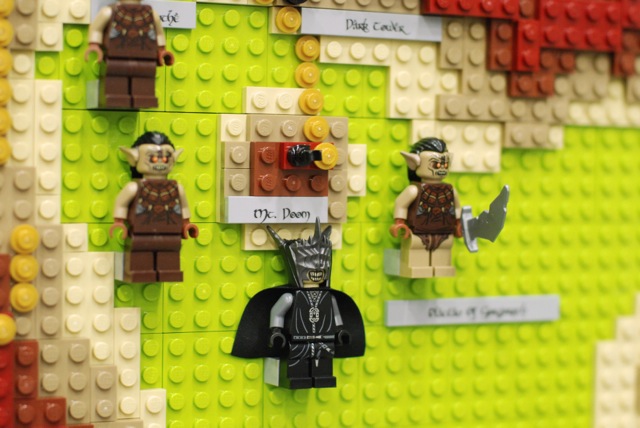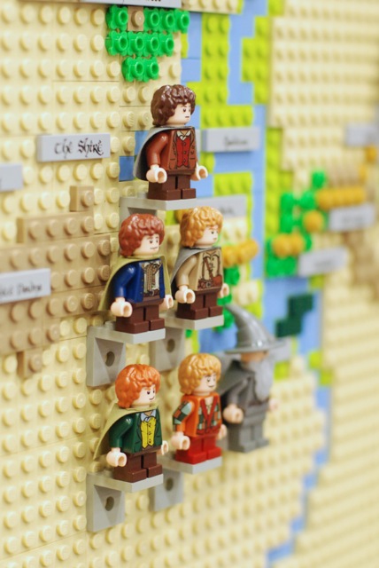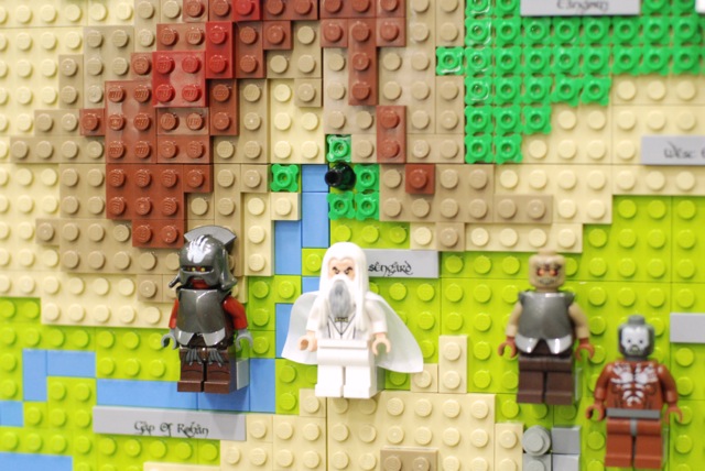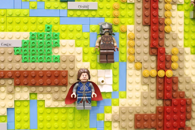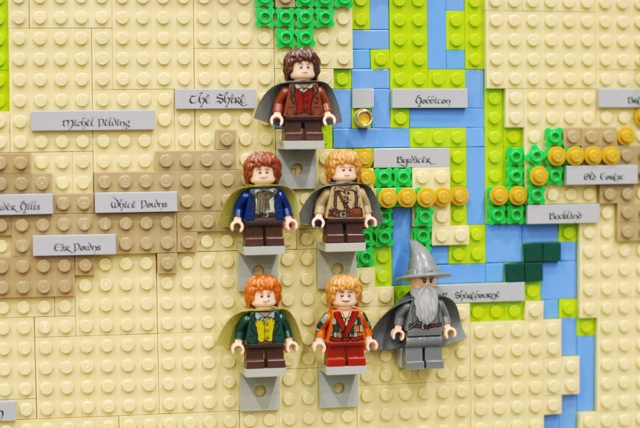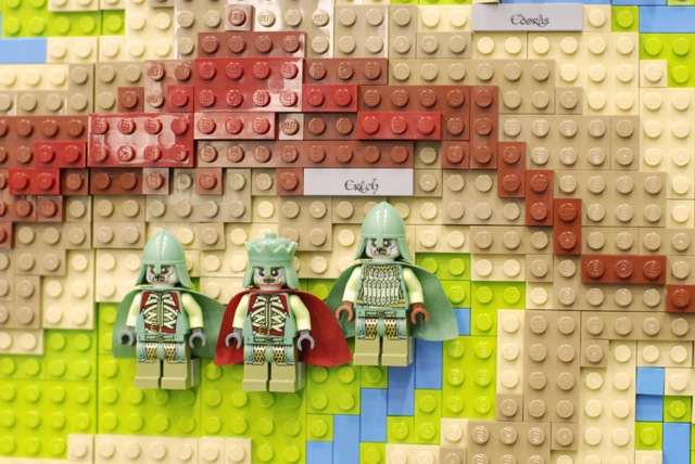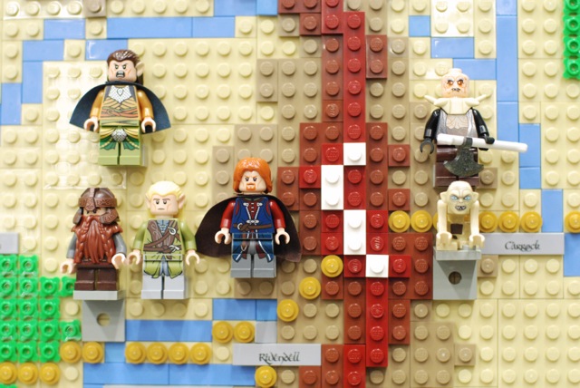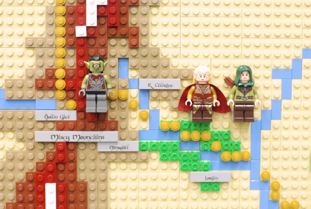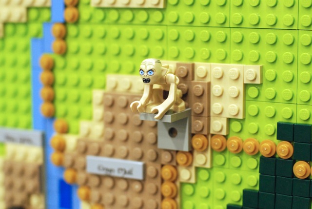 For the Christchurch Brick Show 2014 I build a Topographical LEGO Map of Middle Earth. I measures 2×2 meters and consists of 7 levels. It took approximately 30.000 bricks and four months to build the map. All the main characters of both books are presented on the map as minifigures. Even the path of the ring is illustrated through a breadcrumb style line of golden 1×1 round bricks. The map is accurate as much as a map of a fantastic land can be. I heavily consulted The Atlas of Middle-Earth by Karen Wynn Fonstad. This project was made possible through a strategic grant of LUG 4/2. I also created an album at Flickr for this MOC.